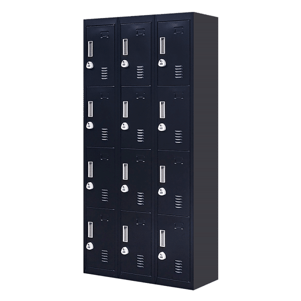 The unit has 12 individual locker compartments stacked in a 3 x 4 grid. Each locker provides ample space for personal items – and can hold up to 30 kg. Built-in ventilations slits keep the stored items from smelling musty. Users may also customise their locker with a name tag or label in the designated slot provided. This comes comes with 3-digit combination lock to ensure safety of your belongings.