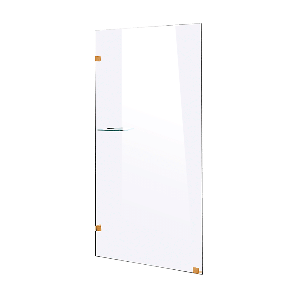 This single-panel screen is crafted from a 10mm-thick toughened safety glass. In addition to its crystal clarity, this glass is specifically designed to ensure absolute safety in the bathroom, meeting all applicable Australian Standards. Three sturdy and premium brass clips — one for the floor, two for the wall — are included for a straightforward, hassle-free installation. This panel measures 800mm wide by 2000mm high.