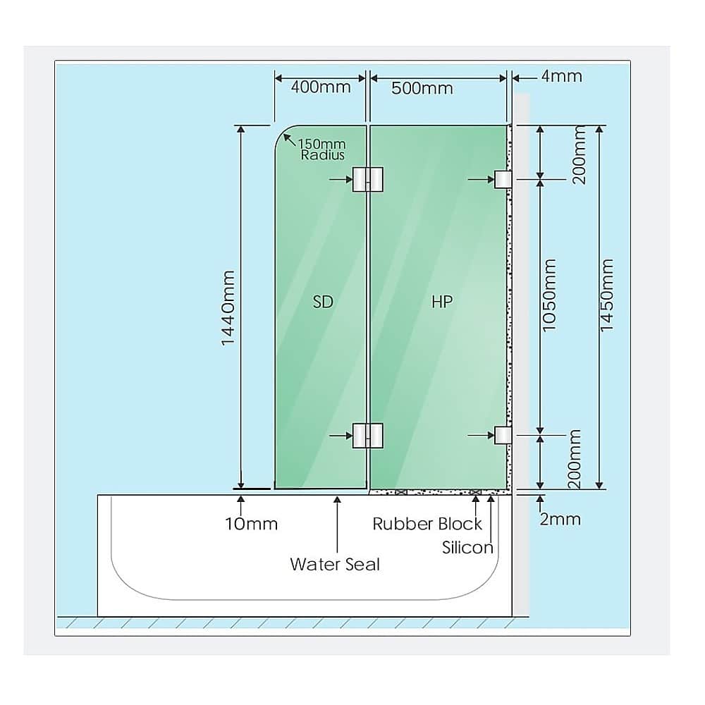 900 x 1450mm Frameless Bath Panel x 1