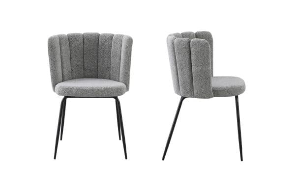 Introducing the Amelia Boucle Grey Dining Chair, a stylish and contemporary addition to your dining space. Crafted with meticulous attention to detail, this chair is designed to provide both comfort and elegance.
