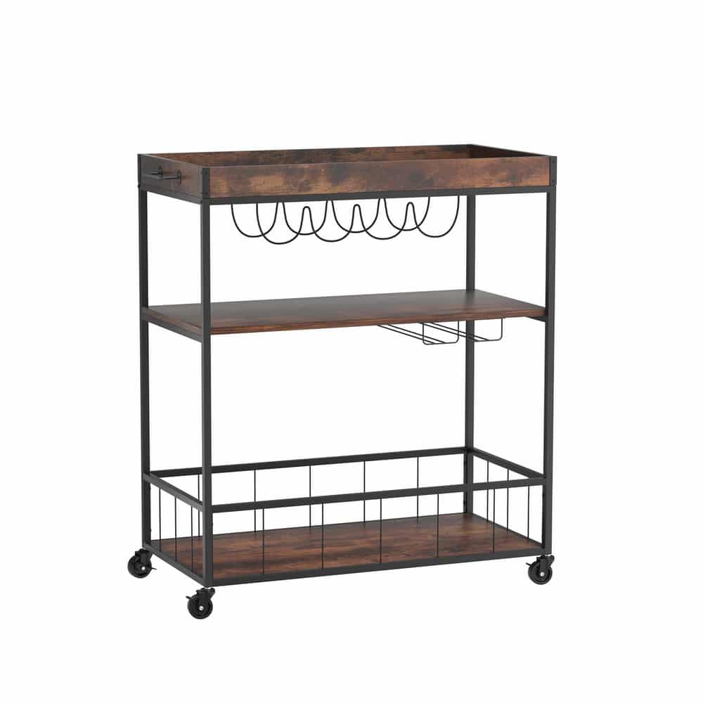 Versatile functionality as a kitchen island, storage cart, or coffee bar