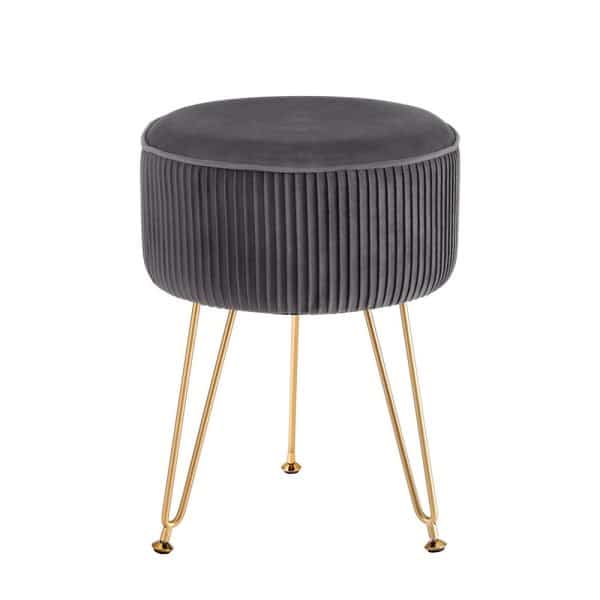 Round velvet Artiss footstool with vertical stripe design, durable MDF frame, and high-resilience foam padding. Features protective metal legs and simple assembly.
