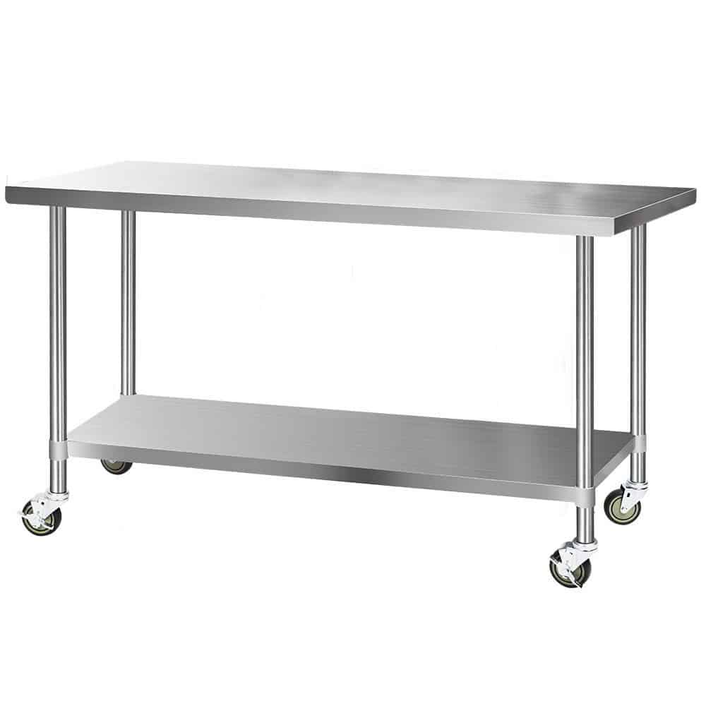 Our Stainless Steel Work Top is finished in commercial grade 430 stainless steel which makes it ideal for use in homes, cafes and restaurants. This bench, with much more space, is wider than the standard one in our stores.The treated bench edges provide extra safety working around the table while the adjustable bottom shelf allows you more height options for storage. Everything is held together firmly with the help of the included allen key for quick and easy installation. And if the floor is uneven, the adjustable legs can make things right with ease.