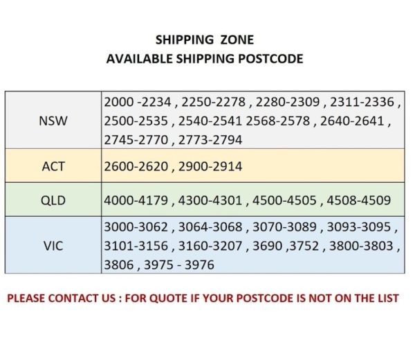 Item is Heavy at over 45 KG and may require Pallet delivery via Toll Ipec depending on your location Item is local pick up or we can arrange Toll Ipec Pallet depending on your location- additional costs apply We are not able to deliver to all suburbs so please contact us prior to confirm Courier costs are additional costs and depending on your State and location Standard Delivery – FREE (ETA: 1 days) Leave warehouse in 24-48 hours. Normally takes about 2-7 days for major cities Australia wide and, a little longer for regional areas. Self Pickup (FREE) – FREE Normally takes about 1-3 business days to process for Self Pick-up orders. Please call to arrange a pick up time best suits you.