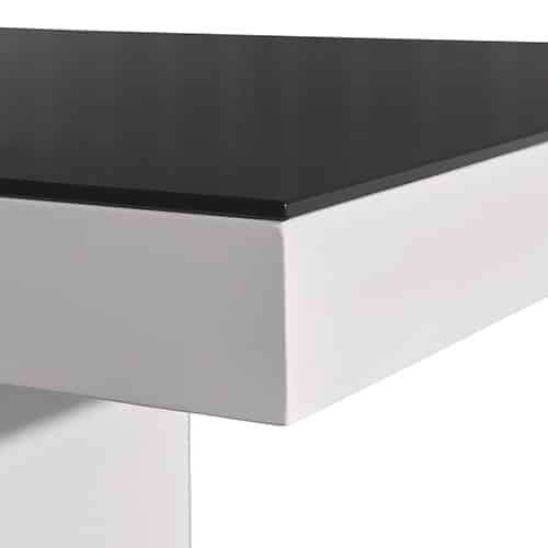 A high gloss finish in white & black colour combine to make this Dining Table an essential piece of furniture for your living room. A thick rectangular MDF top makes for a secure surface to hold any necessary item. The contemporary design ensures this dining table will make a stylish statement piece of furniture for any modern home.