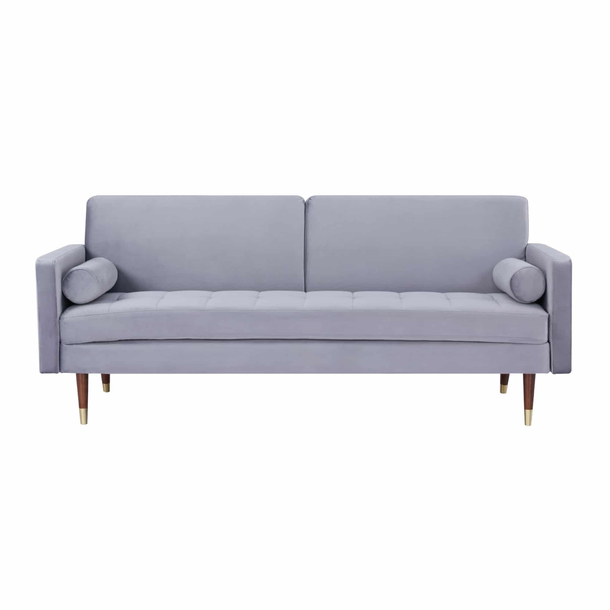 This smart-looking 3-seater sofa bed in grey ensures luxury and comfort with space-saving qualities. The Scandinavian-style furniture is upholstered in a plush upholstery made of high-performance 100% polyester. The upholstery has a smooth fit due to the intact tailoring on the frame. The solid pine wood and plywood frame make the sofa bed light and highly durable. The frame with seating support made of thick bonded foam, fabric, and high-tensile S springs ensures divine relaxation. Tapered, wooden legs in coffee colour give the furniture a strong base. The sofa is easy to assemble; only the legs need assembly. The long-lasting furniture comes with a 1-year warranty.