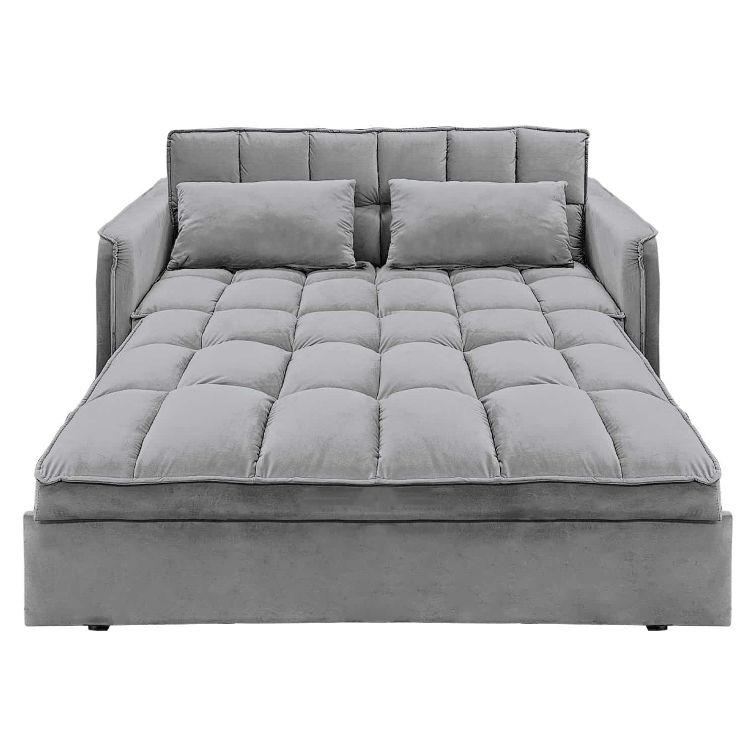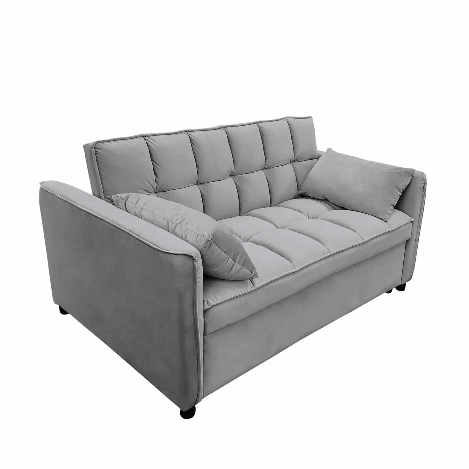 Step into sophistication and practicality with Sarantinos Quincy Sofa Bed! A beautiful statement piece that effortlessly transforms into a spacious bed where you can enjoy superior comfort. Immerse yourself in the plush sophistication of Quincys tufted upholstery, a perfect blend of comfort and contemporary elegance.