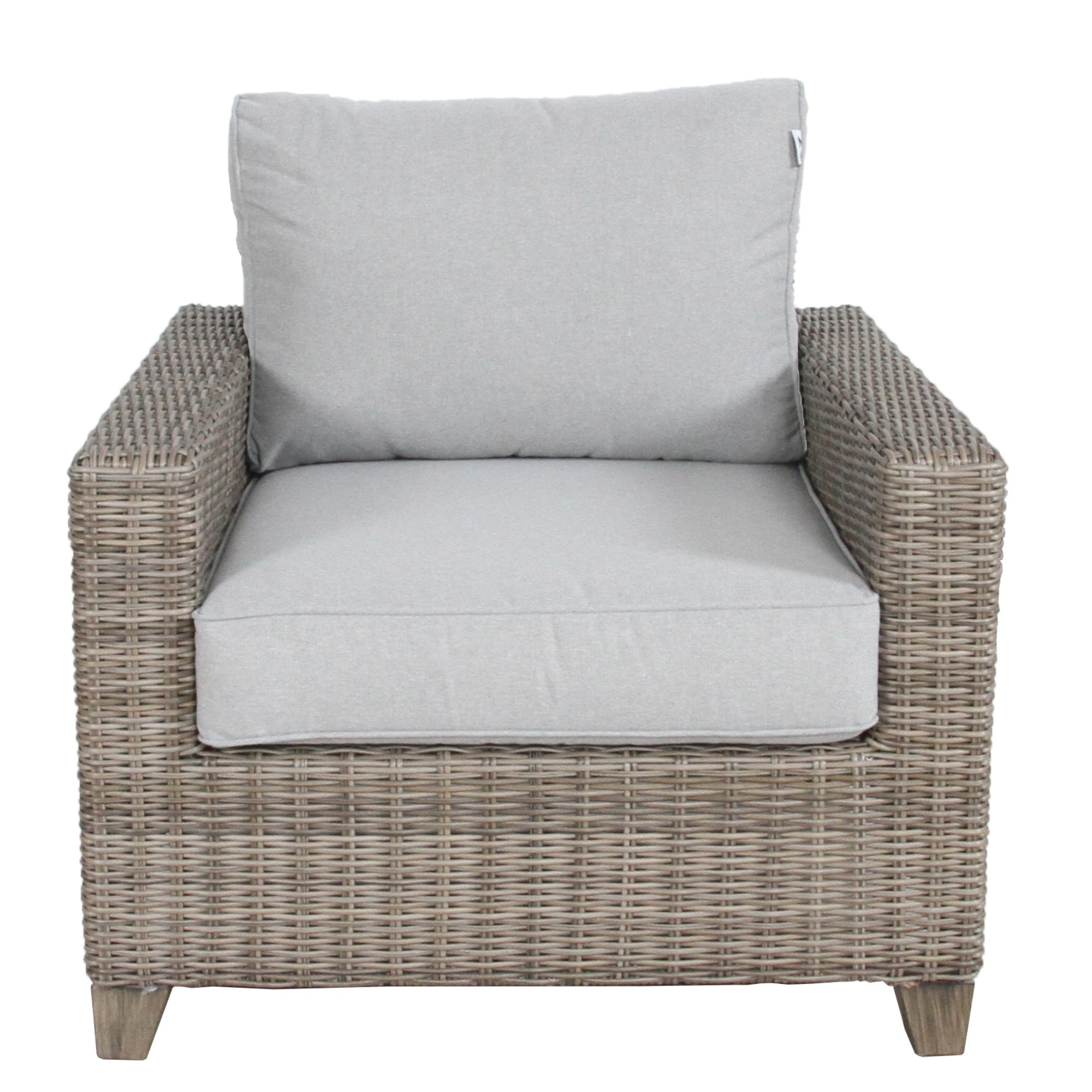 This single-seater sofa makes any outdoor space look cool. Beautifully designed in traditional style with a touch of modernity, the sofa showcases high-strength half round wicker supported by a strong aluminium frame. Featuring deep and wide seat cushions, the gorgeous furniture piece has been crafted to offer the perfect lounging experience. The cushions are made of all-season material, so they are weatherproof, water-repellent, and also UV protected. They can easily withstand a sunny and hot season as well as a rainy one. The structural frame of the sofa is made of aluminium and big, half-round wicker. The metal and wicker frame provides it with great durability, and the frame is super strong because it is made of non-rusting, lightweight aluminium. The sofa is upholstered in polyester. The wicker is brown, while the fabric is in light grey. It comes with a one-year warranty.
